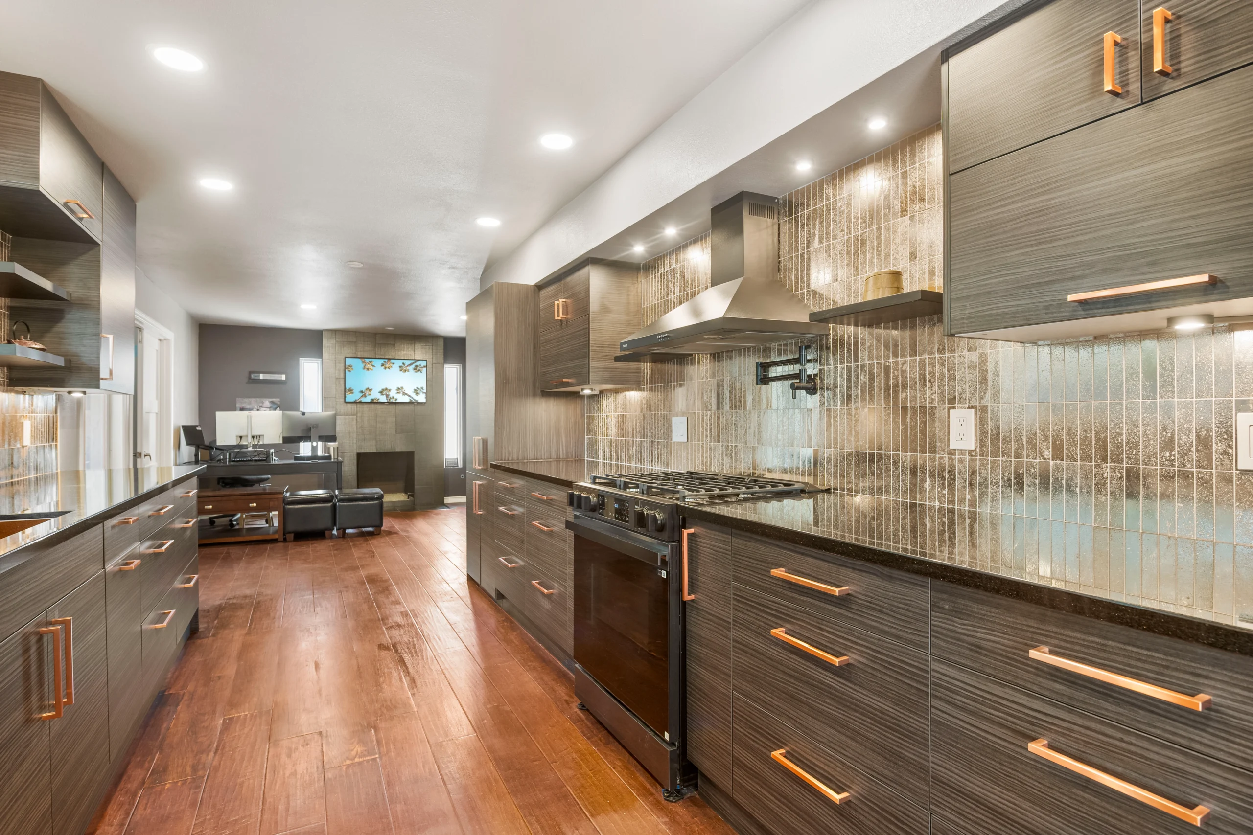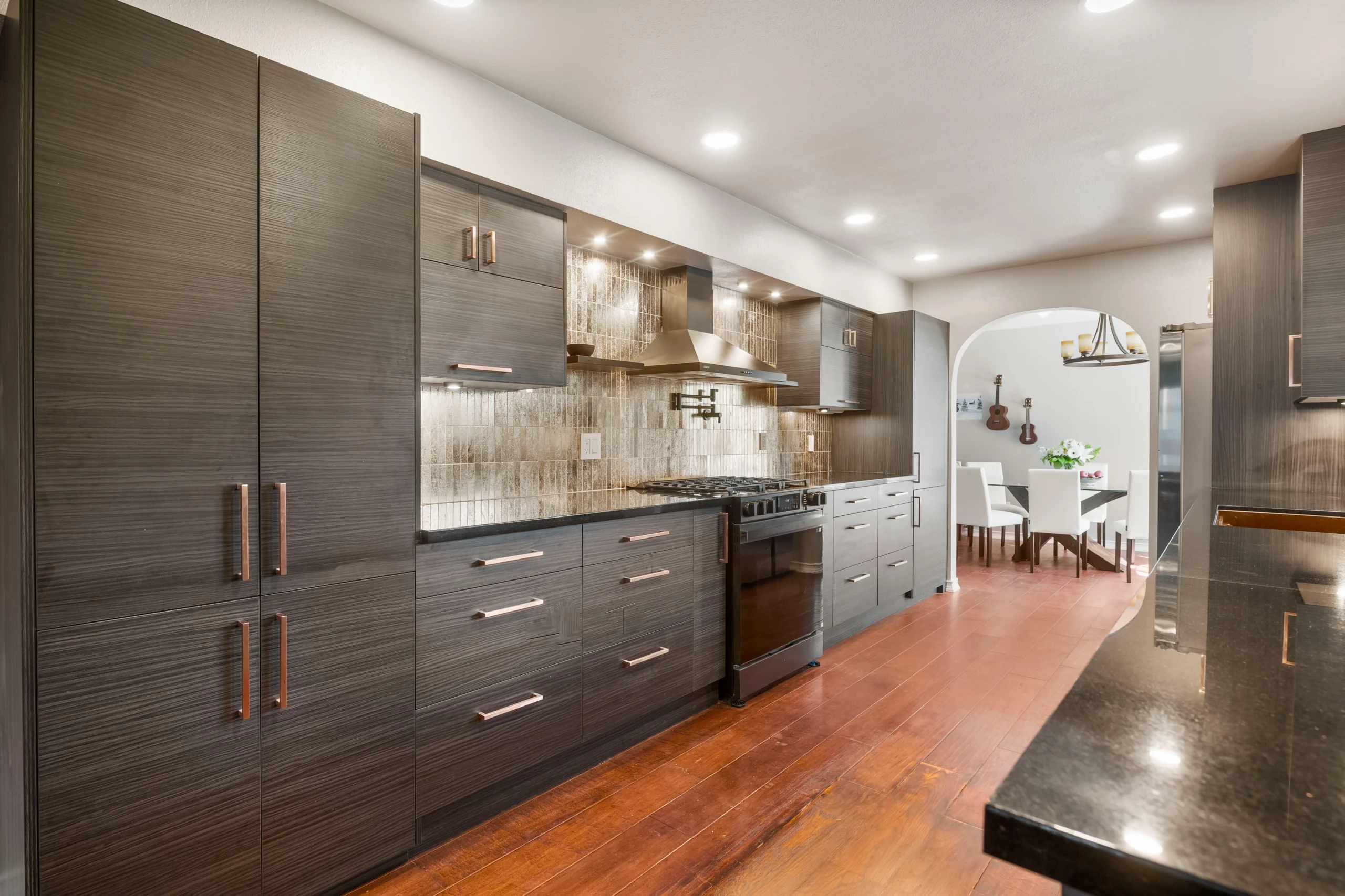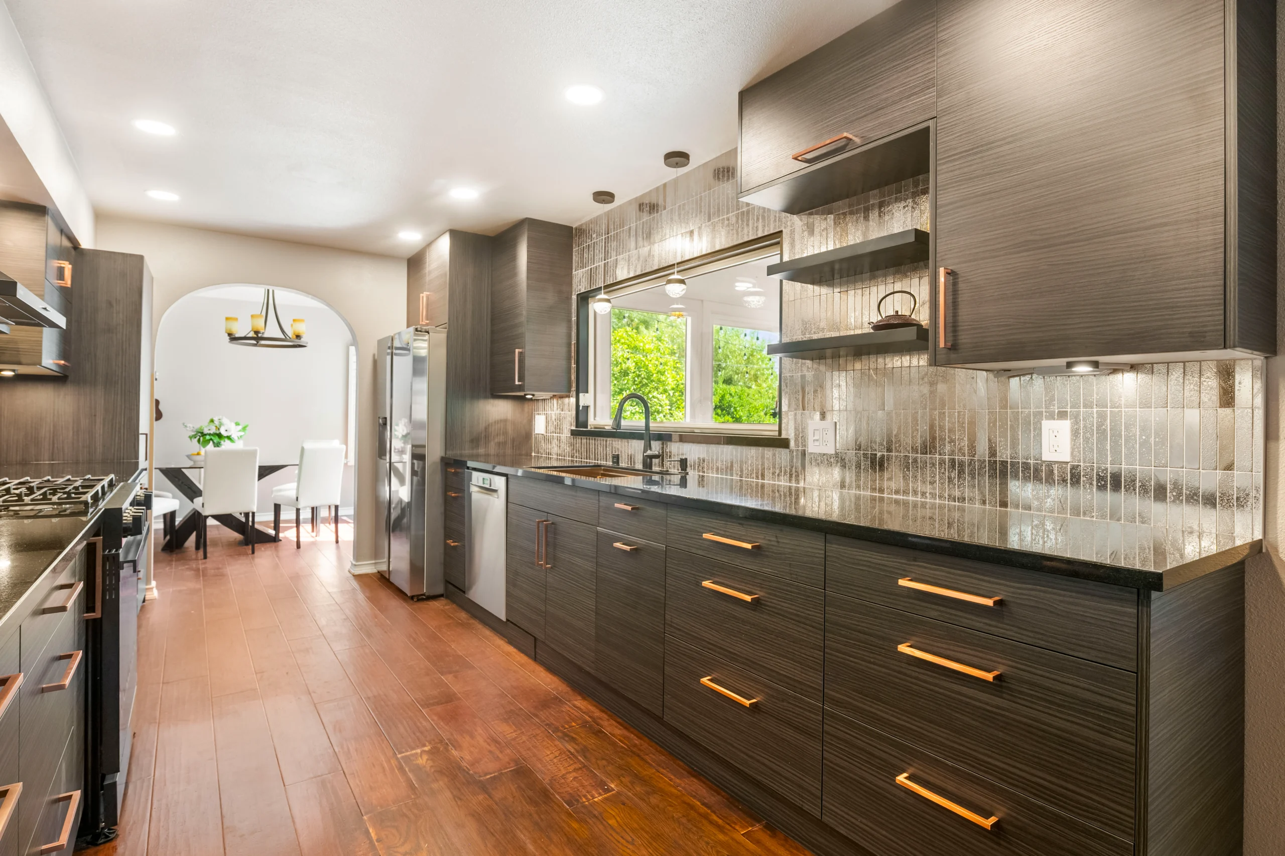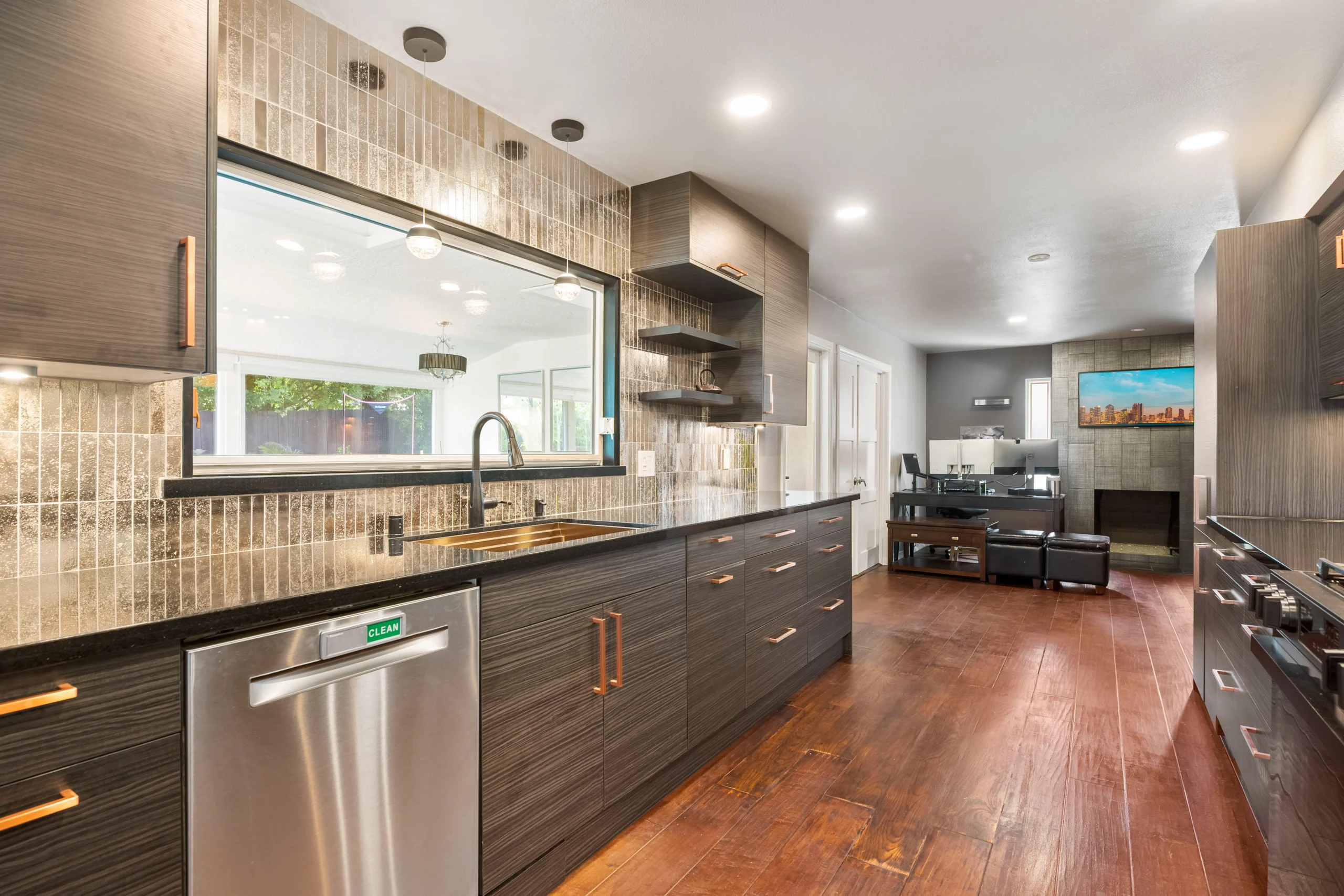 This galley kitchen remodel blends smart layout updates with modern finishes, including custom cabinetry, new countertops, and a full-height backsplash. Upgraded lighting, plumbing, and electrical enhance both functionality and everyday comfort.