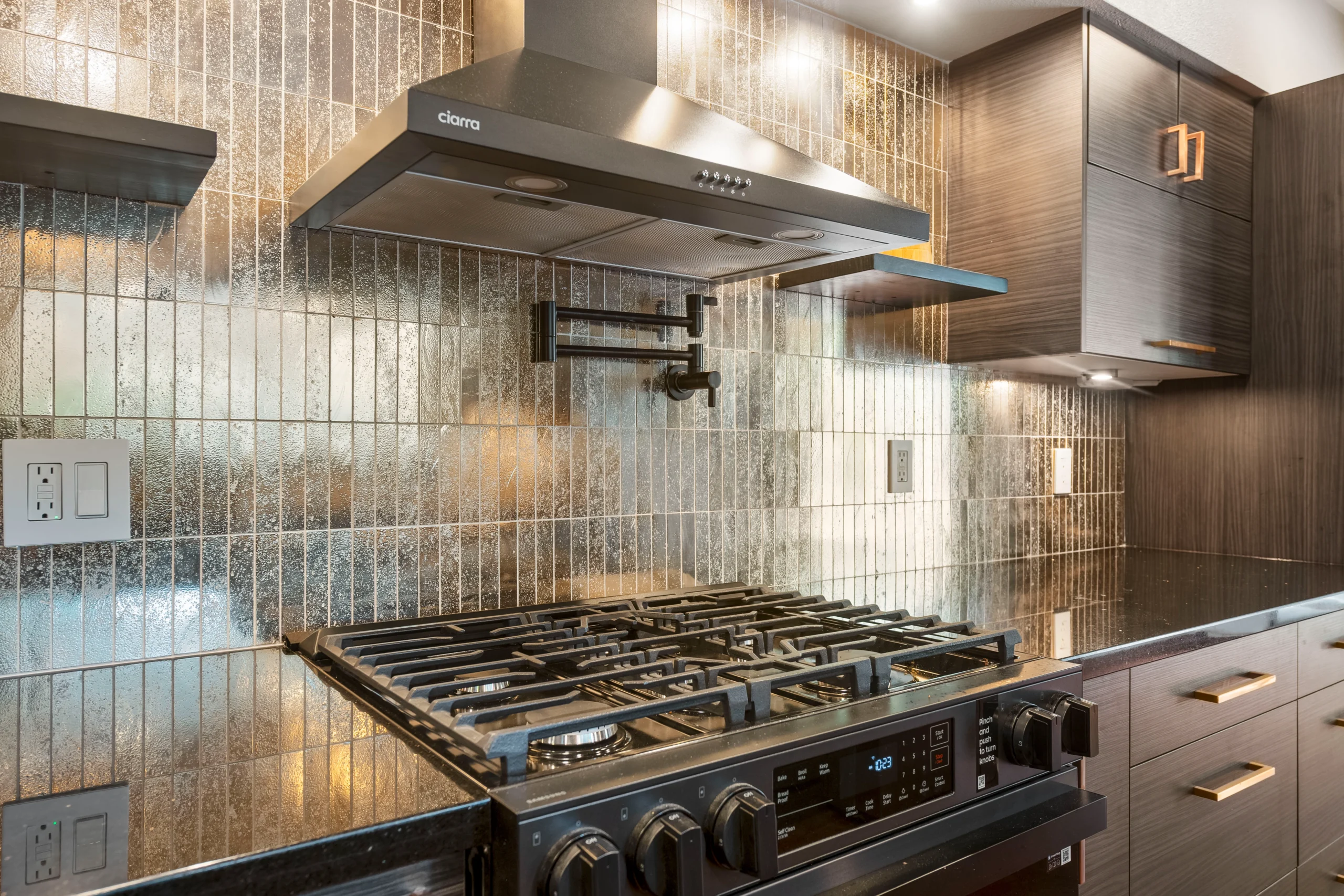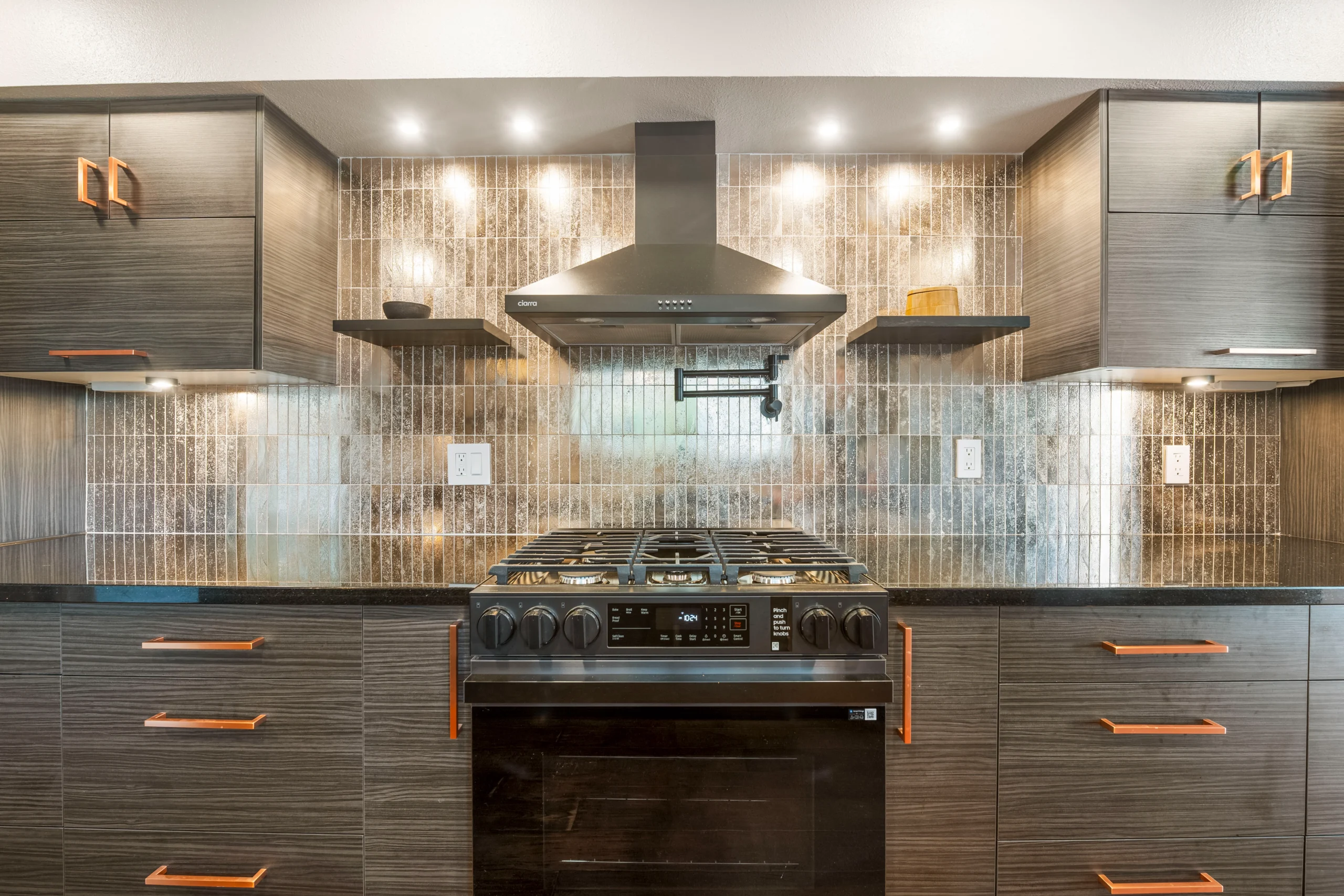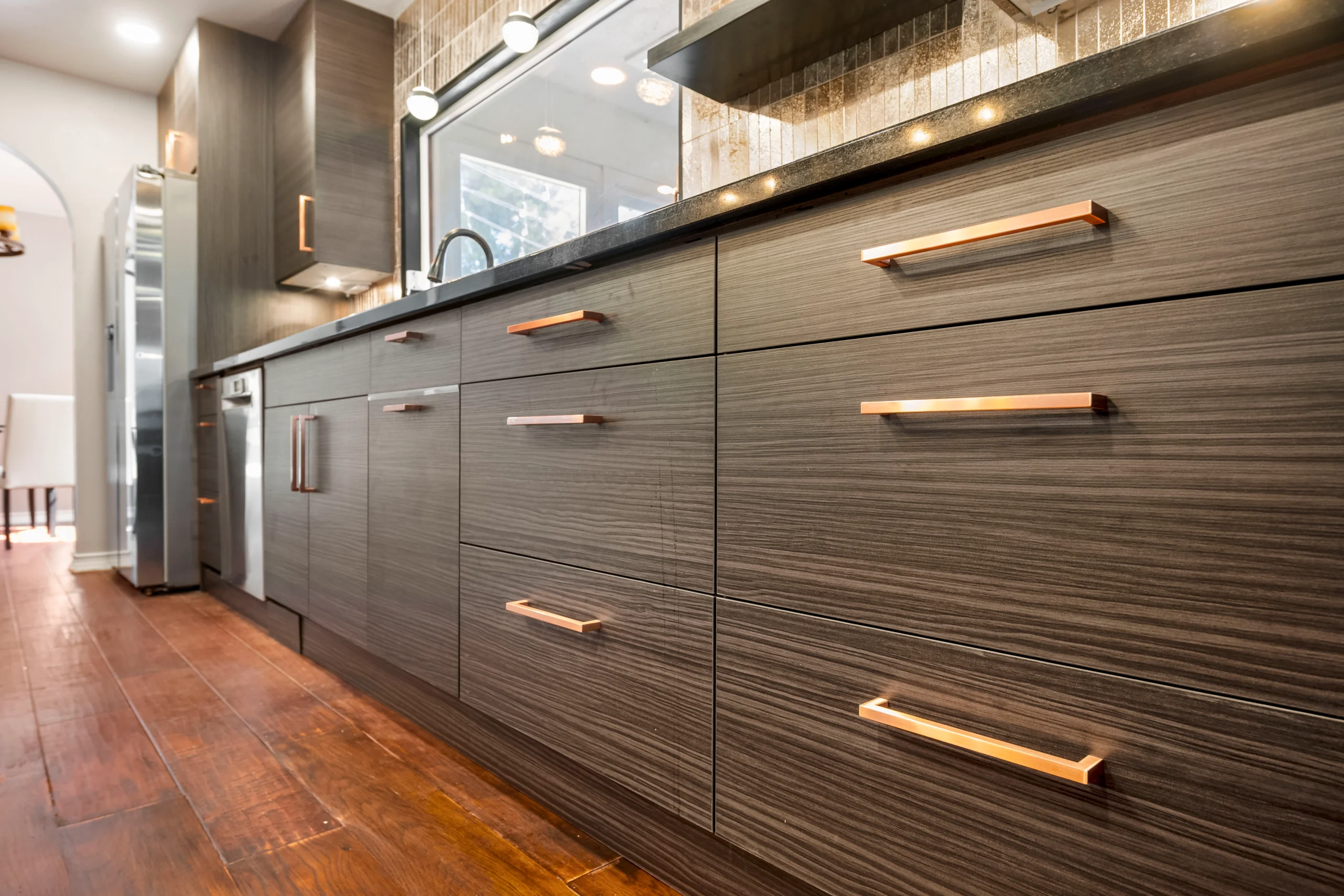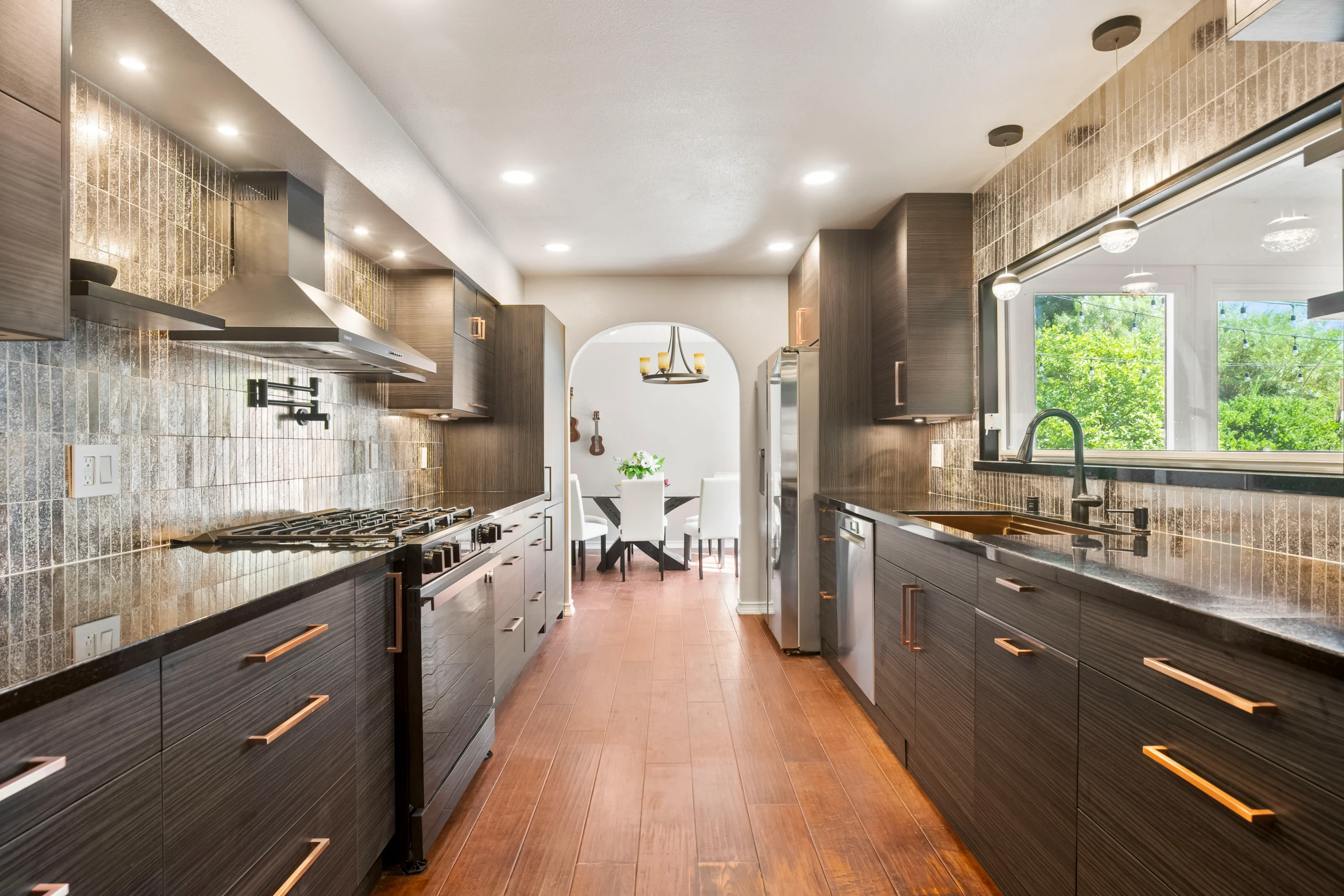 This galley kitchen remodel blends smart layout updates with modern finishes, including custom cabinetry, new countertops, and a full-height backsplash. Upgraded lighting, plumbing, and electrical enhance both functionality and everyday comfort.